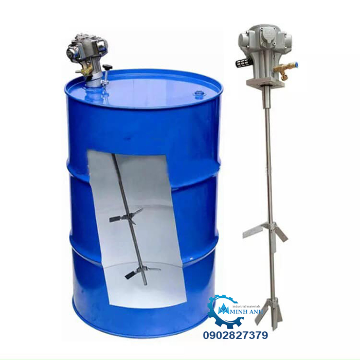 Bên cạnh đó, trục khuấy được gắn 2 cánh khuấy giúp tăng gấp đôi sức mạnh và hiệu suất khuấy đều sơn hoặc hóa chất trong thùng phuy.