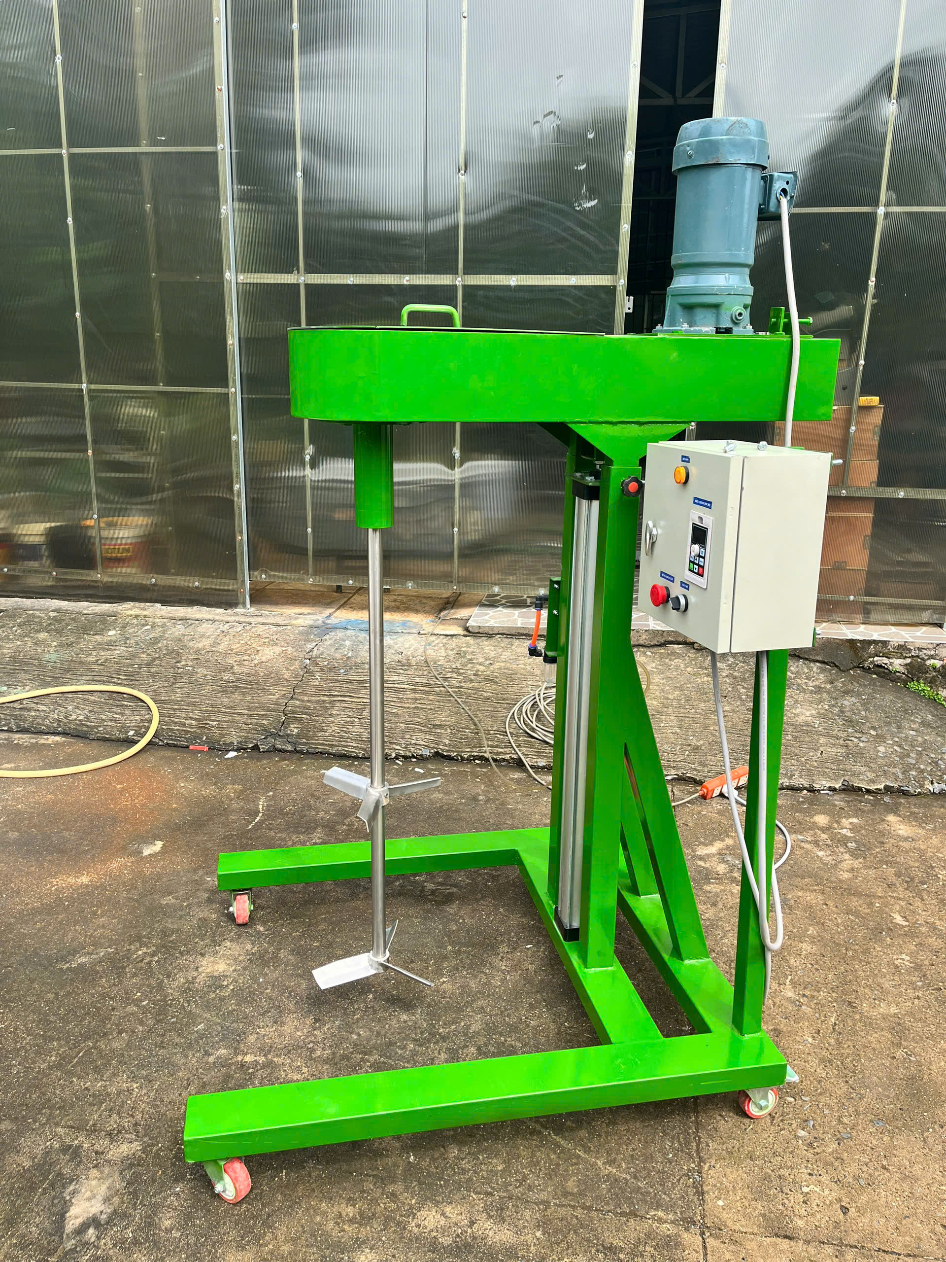 Máy khuấy trộn hóa chất là thiết bị chuyên dụng trong công nghiệp dùng để khuấy, hòa tan, trộn đều các loại hóa chất lỏng, dung môi, axit, bazơ, nhựa, keo hoặc chất tẩy rửa có tính ăn mòn cao. Thiết bị thường được sử dụng trong bồn chứa, thùng IBC hoặc thùng phuy, đáp ứng nhu cầu khuấy trộn liên tục với hiệu suất cao.