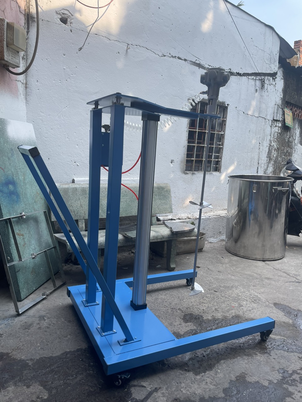 Hình ảnh thực tế của máy khuấy sơn bằng khí nén nâng hạ tự động thùng 200 Lít