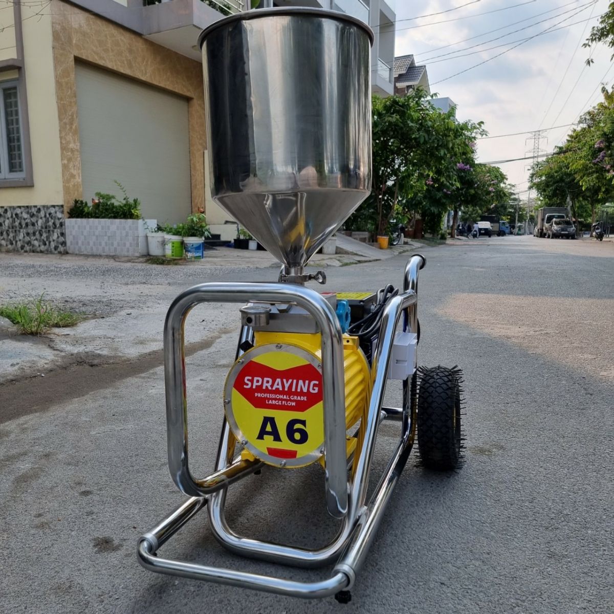 Máy phun bột bả A6 được thiết kế với độ bền cao và tính năng hiệu quả trong việc sử dụng. Máy được trang bị động cơ mạnh mẽ, đảm bảo tốc độ phun và áp lực bột bả tối ưu, giúp tiết kiệm thời gian và năng lượng cho người sử dụng.