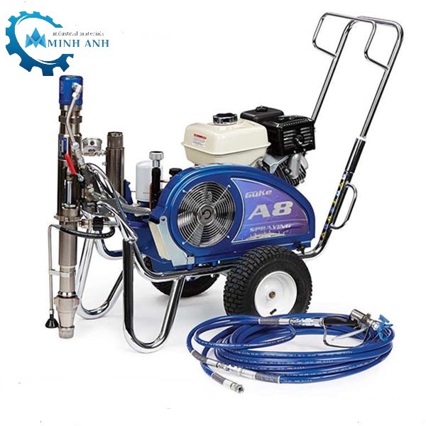 Máy phun bột trét tường động cơ xăng GUKUE – A8 với độ ứng dụng cao giúp nhà thầu có thể linh hoạt sử dụng cho nhiều công trình khác nhau. Máy dùng được nhiều loại nhiên liệu như: phun bột trét tường, phun bột chống cháy, phun son dầu, epoxy cho kết cấu thép, tàu biển, phun sơn chống thấm, sơn nước tường nhà và các loại sơn có độ đậm đặc cao ...vv
