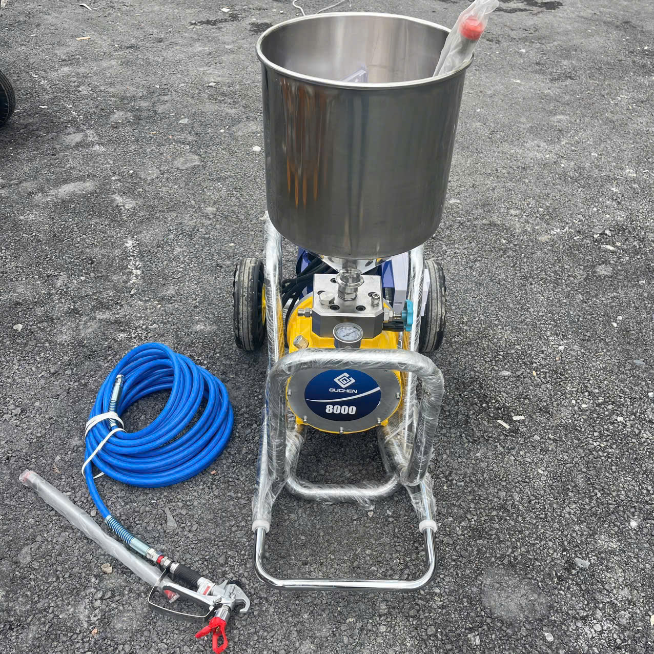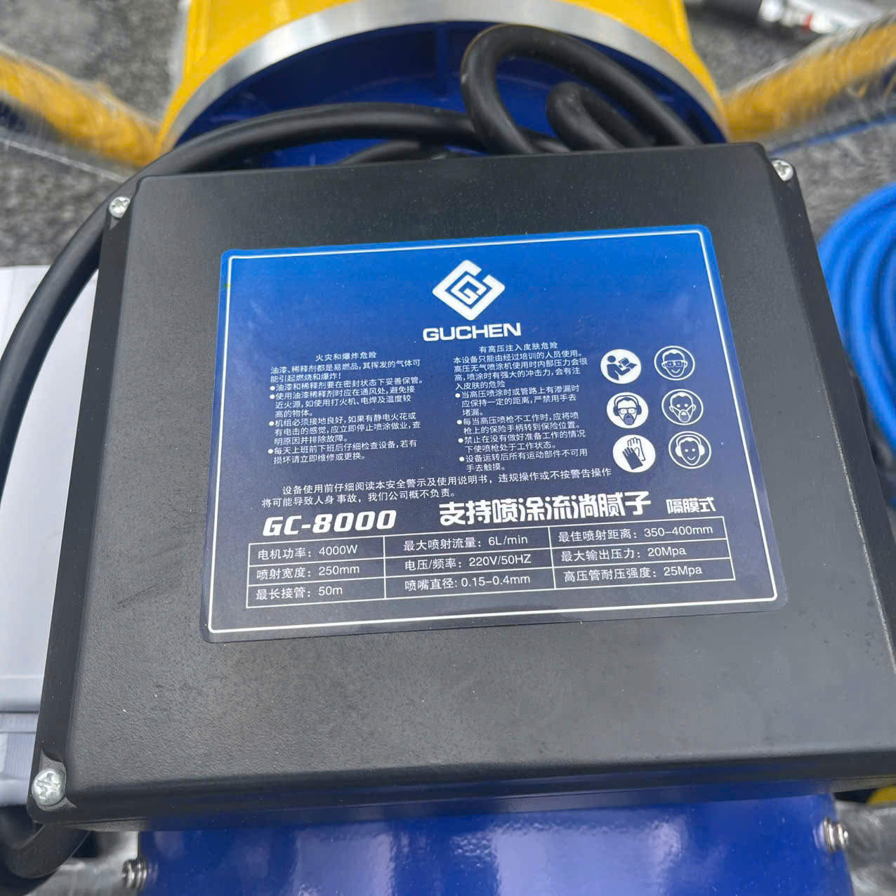 GC-8000 sử dụng công nghệ phun bột trét áp lực cao, đảm bảo lớp phủ bám chắc, đều màu, không bị sủi bọt hay bong tróc sau khi khô. Thiết kế đầu phun giúp giảm tiêu hao vật liệu mà vẫn đạt hiệu quả thi công tối đa.