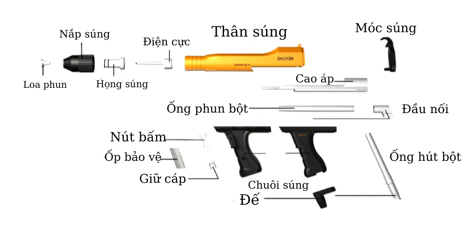 Cấu tạo của súng sơn tĩnh điện cầm tay sooho - 210M