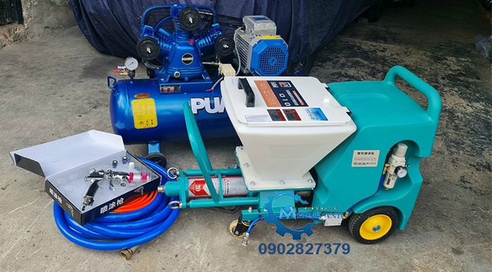 - ngoài chức năng phun vữa chống cháy còn có thể sử dụng được với nhiều loại vật tư đa dạng như sơn chống thấm hai thành phần, sơn chống thấm gốc Sika, gốc keo -xi măng - Polyme, gốc Acrylic, thấm gốc Polyurea,… và mọi loại sơn chống thấm trên thị trường hiện nay.