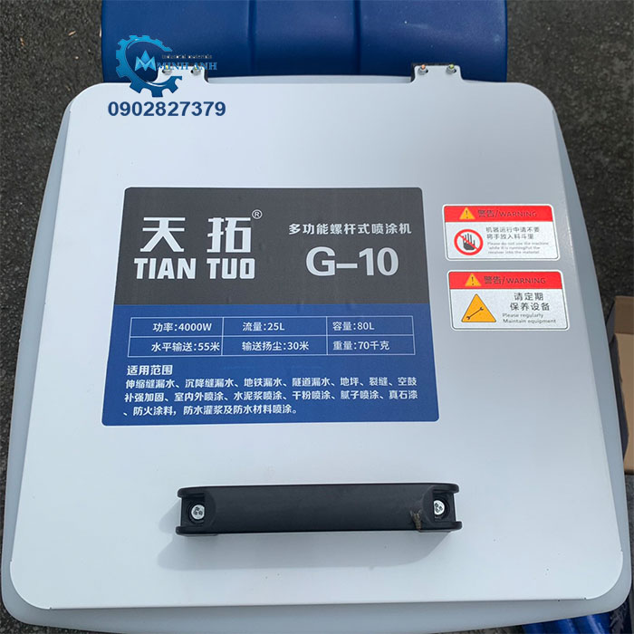 - Máy phun vữa chống cháy G10 còn là một sản phẩm đa chức năng khi có thể sử dụng được đa dạng vật tư như sơn chống thấm hai thành phần, sơn chống thấm gốc Sika, gốc keo -xi măng - Polyme, gốc Acrylic, thấm gốc Polyurea,… và mọi loại sơn chống thấm trên thị trường hiện nay.