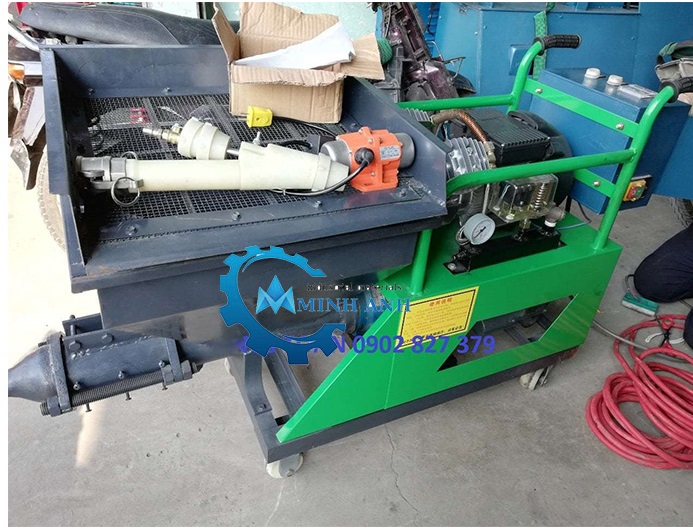 - Máy phun vữa 220v được trang bị động cơ mạnh mẽ, đảm bảo khả năng hoạt động liên tục và hiệu quả, phù hợp cho mọi loại công trình xây dựng.